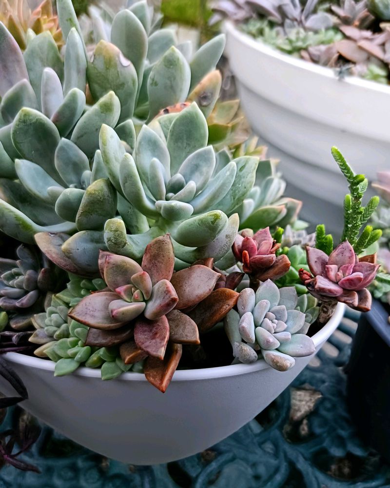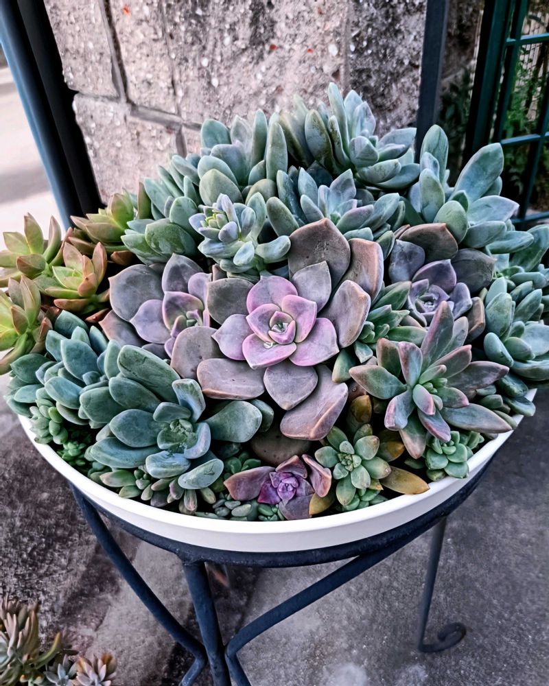 多肉寄せ植えを作って40日ぐらい経ち、最近の寒気で少しずつ可愛いく色づいてきました☘️