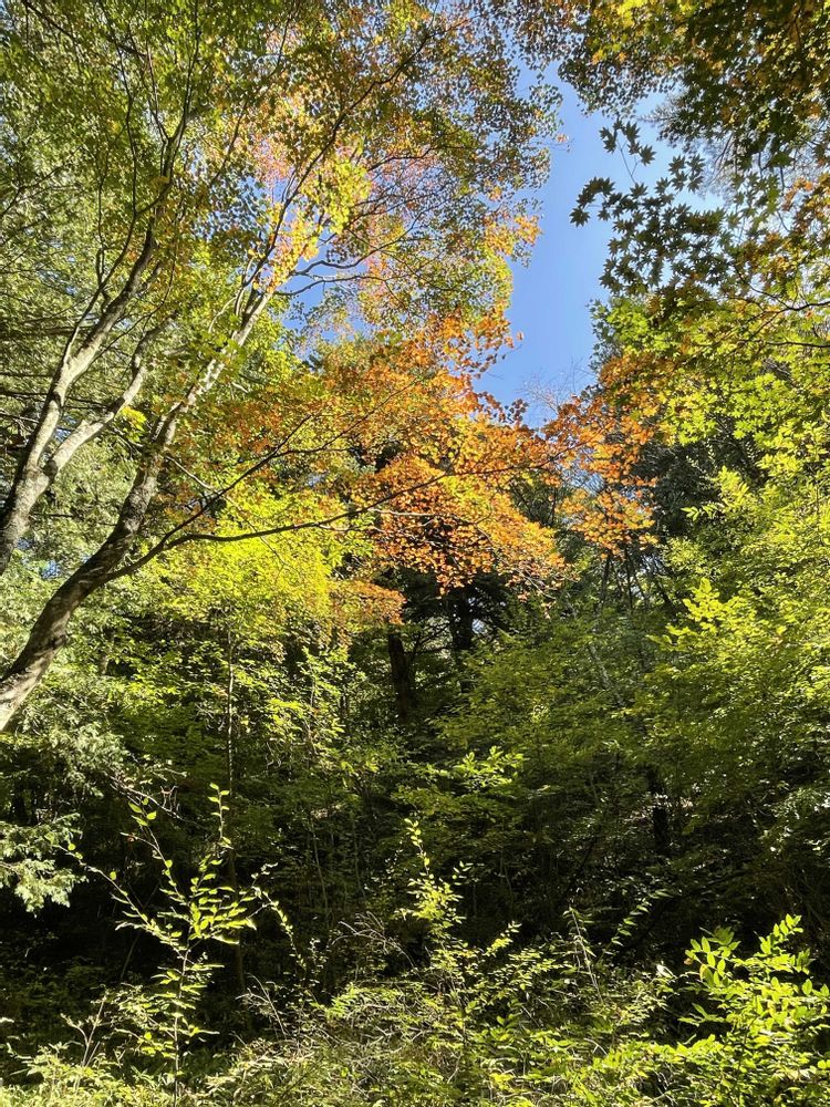 ④の画像: その横には紅葉した🍁カエデと青空が気持ち良い。