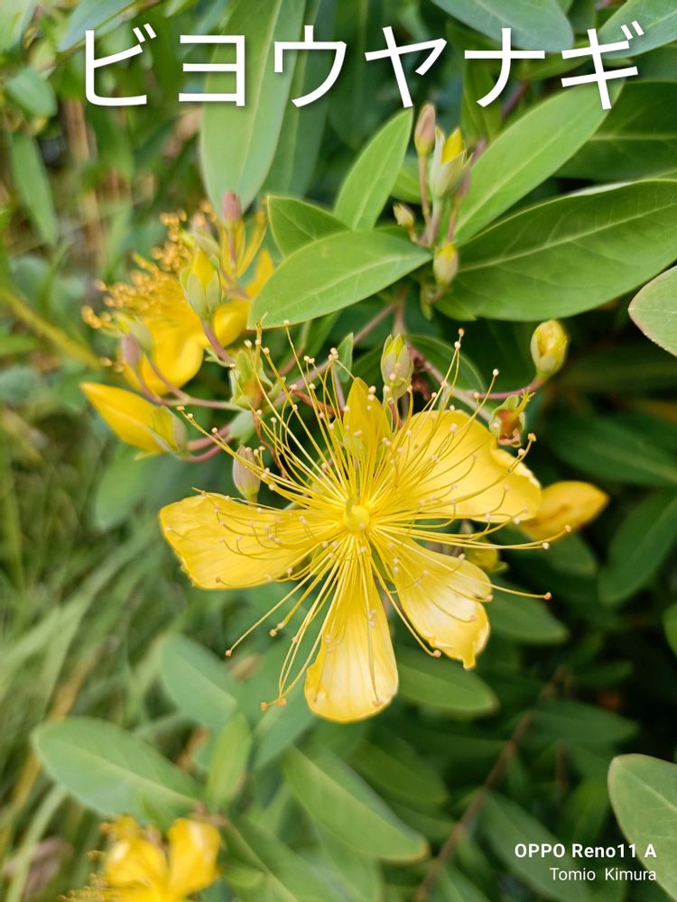 散歩道(京都丹波亀岡 南郷公園)の植え込みに、黄色い花が数輪咲いていました。
