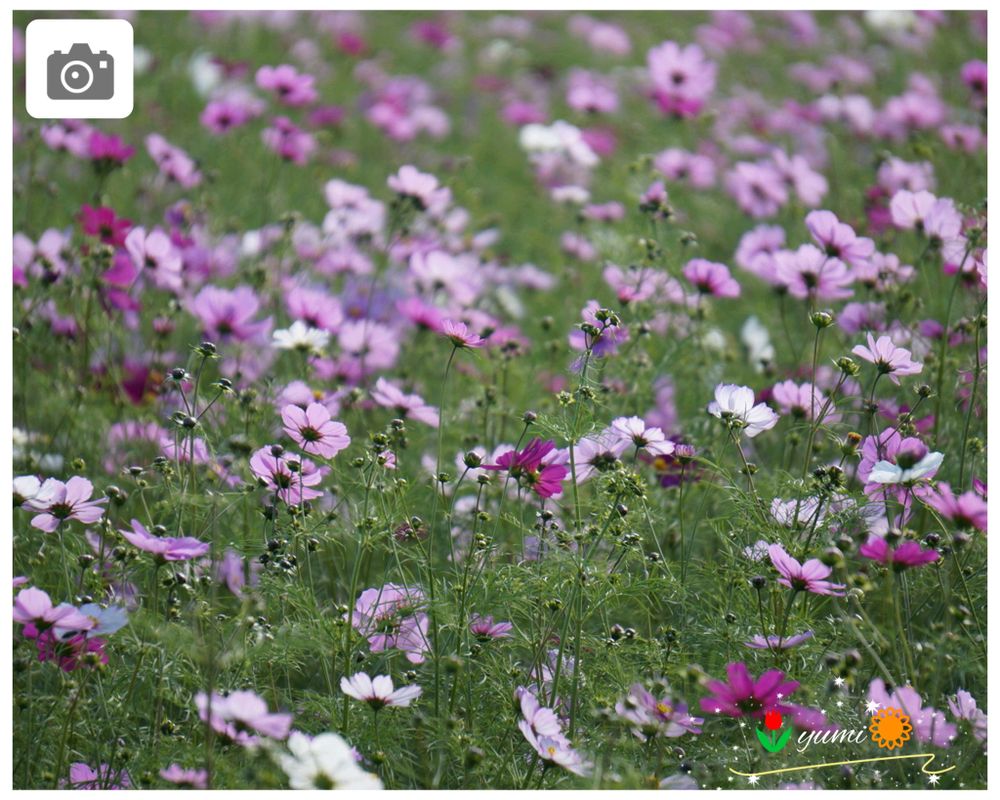 見渡す限りのコスモス畑凄ーい💕🤍💓🤍🩷🤍