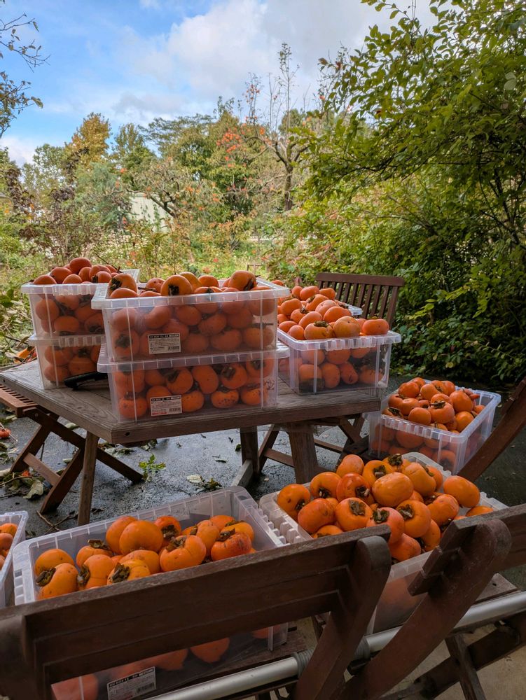 なんで素敵な光景。豊作柿の木憧れます😻💞熟柿のブランデー漬けにしたり、葉っぱもお茶やフレッシュで毎日頂きたい位、どこをとっても無駄がない羨ましいっ💦