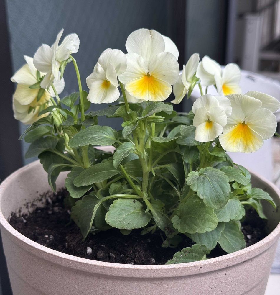 パンジービオラの購入基準はアンティーク・ニュアンス系の色ではなく💦ベインとブロッチが目立たない、濃い色ではないもの💦💦この子はベインとブロッチが黄色でこわくなさそうだったのが決め手になりました。お値段も300円台で「よく咲くスミレ」よりちょっと高いくらい。