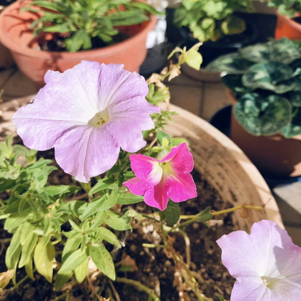 ペチュニアちゃん 淡いピンク色の中に1輪だけ濃いピンクが咲いて可愛いです🩷💓