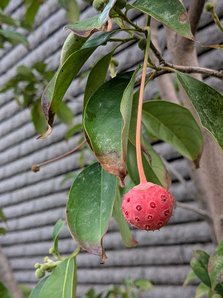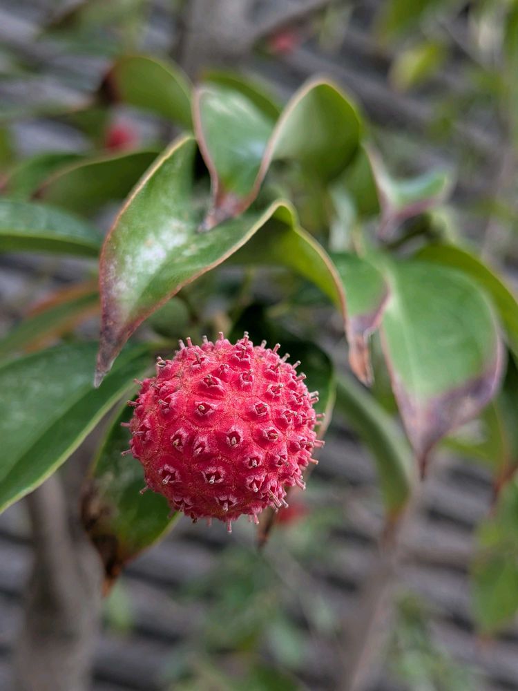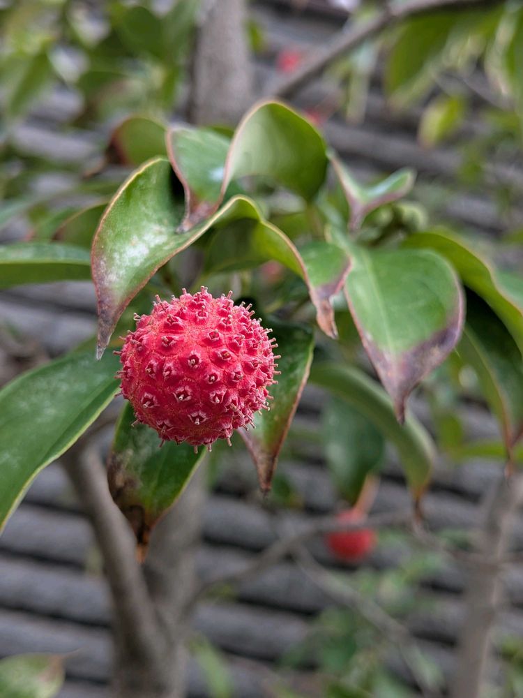 ヤマボウシの赤い実💖 熟すと美味しいと聞きました〜
