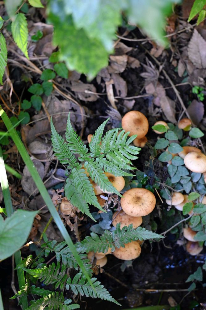 2枚目、お鷹の道に小さなシダと🍄🟫