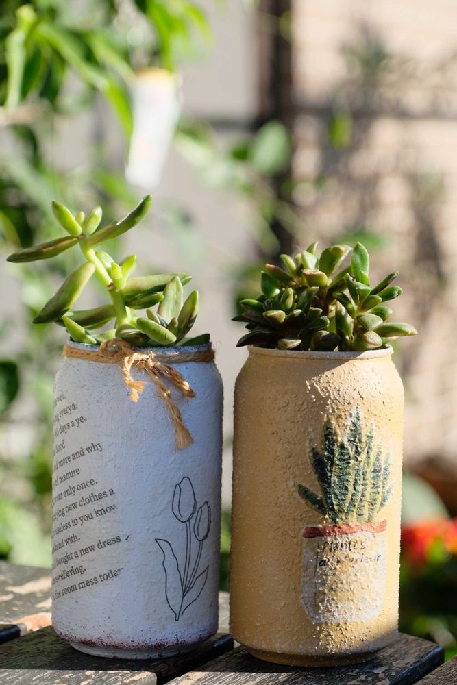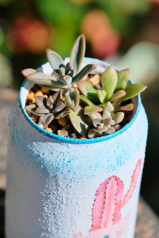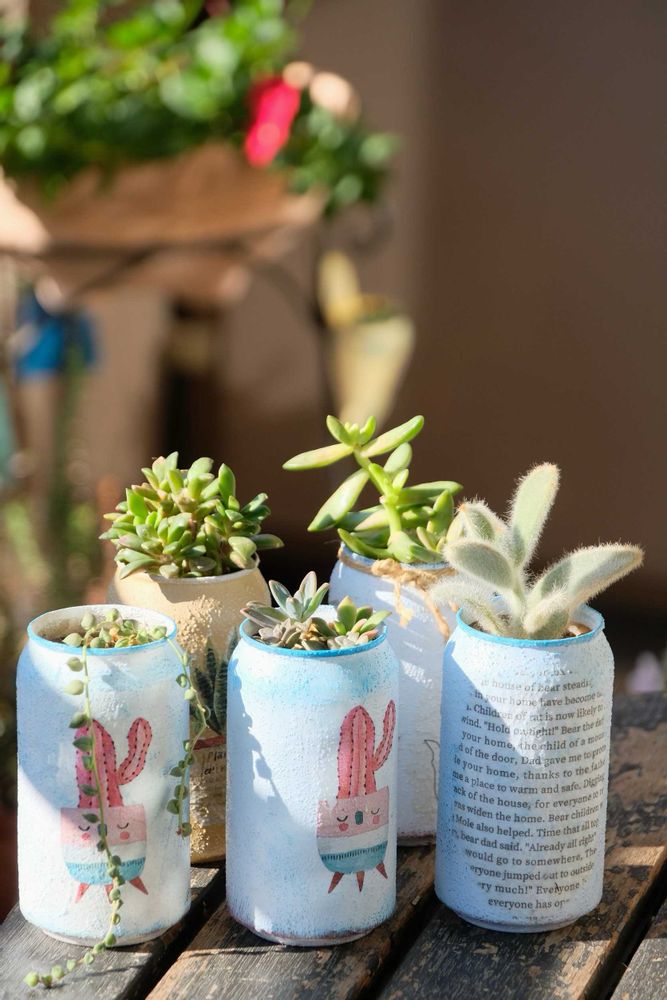 自作リメ缶に入れた多肉さん達💕