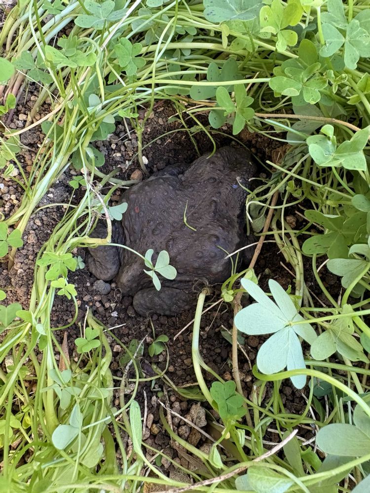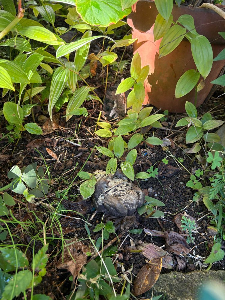 庭でバケツから転がして出してあげると🐸ひっくり返ってしまい😅動かない