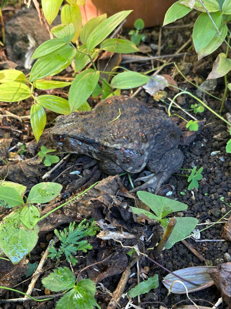 覗くと脱走したらしき庭の🐸カエルちゃん😱