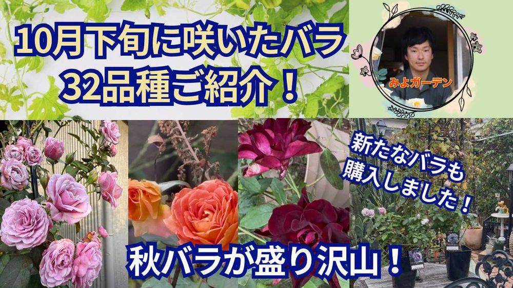 今回のYouTube動画では、10月下旬に咲いたバラ32品種をご紹介!