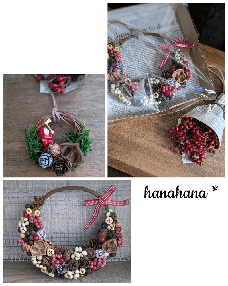 hanahanaさんの木の実シリーズ、どれもとっても素敵🎵リースはお友達のところで幸せに飾られますね🥗