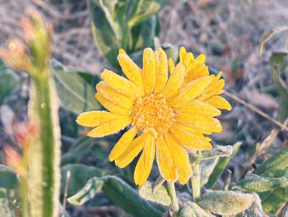 キンセンカは強い子で負けませんが、パキパキ凍ってました💦