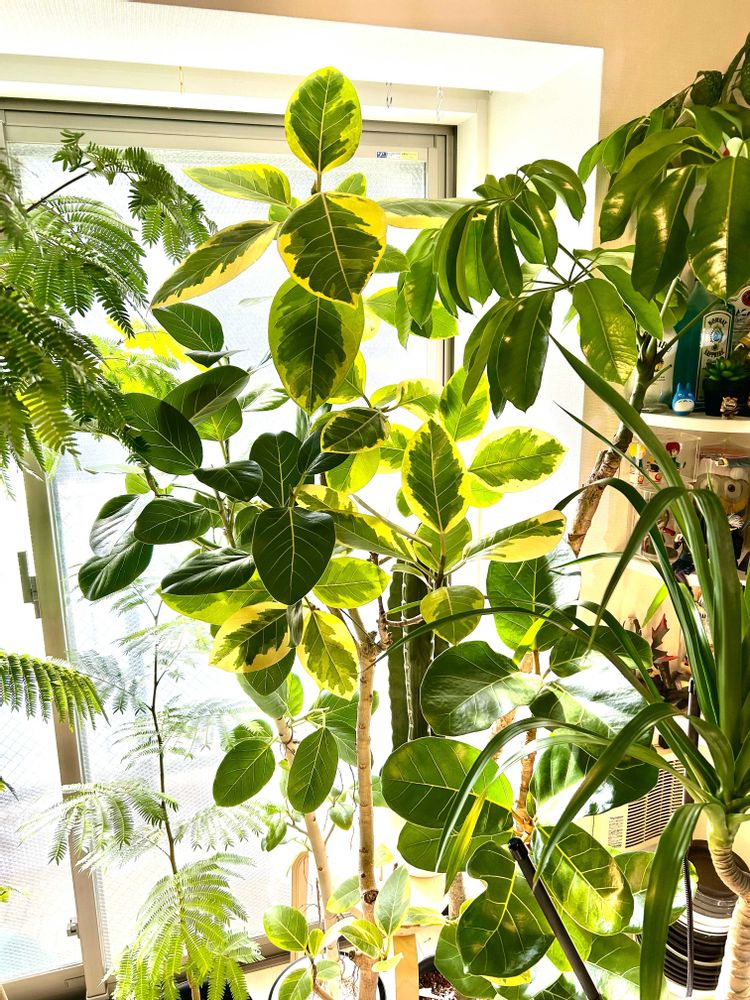 お気に入り😃ゴムの木さん達にはいつも元気を貰えます😃ウンベラータのハート❤️の葉っぱ☘️も素敵ですがアルテシマの斑入りの明るい色の葉っぱが1番大好き💕😘❤です〜