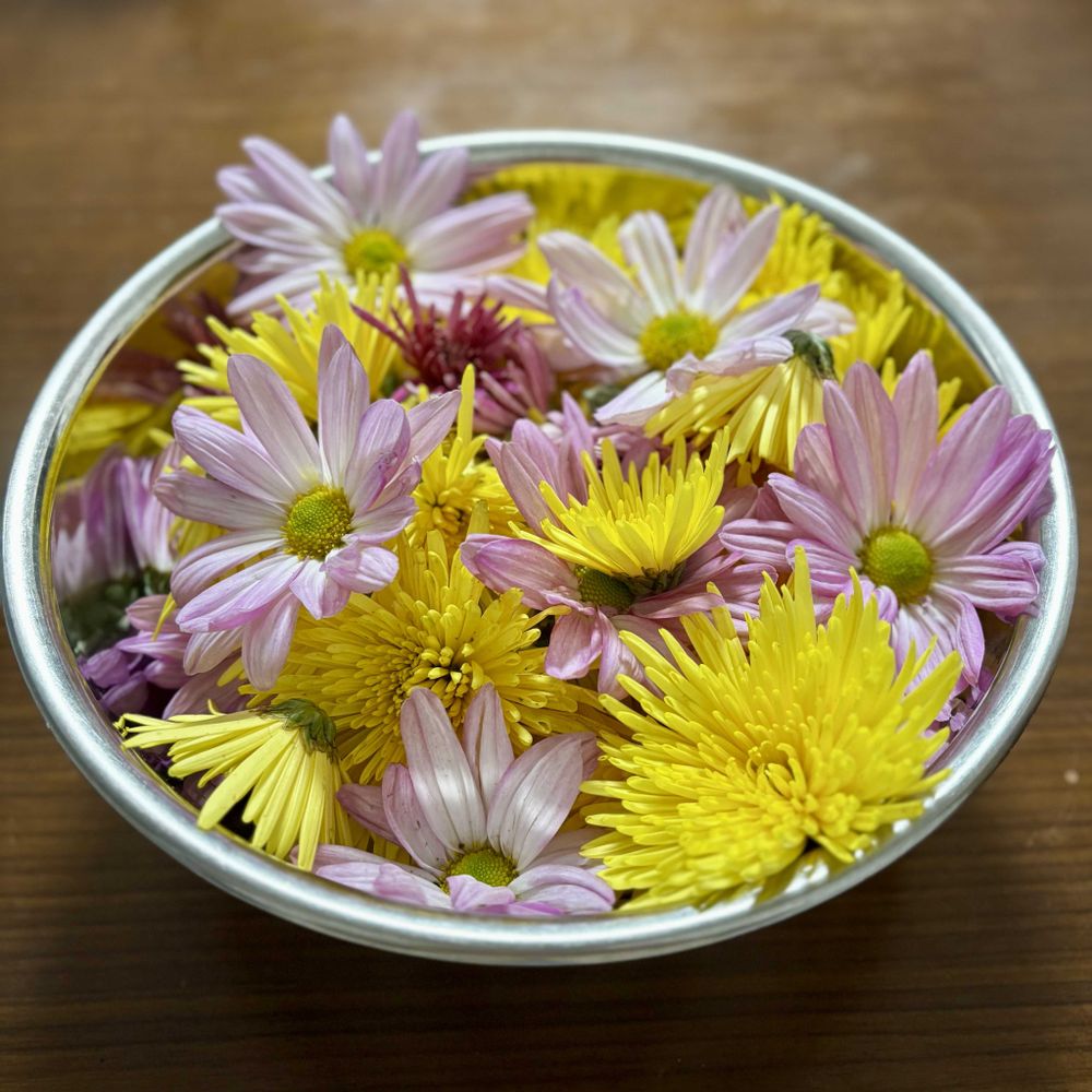 大家さんから摘みたての菊の花を沢山いただきました✨