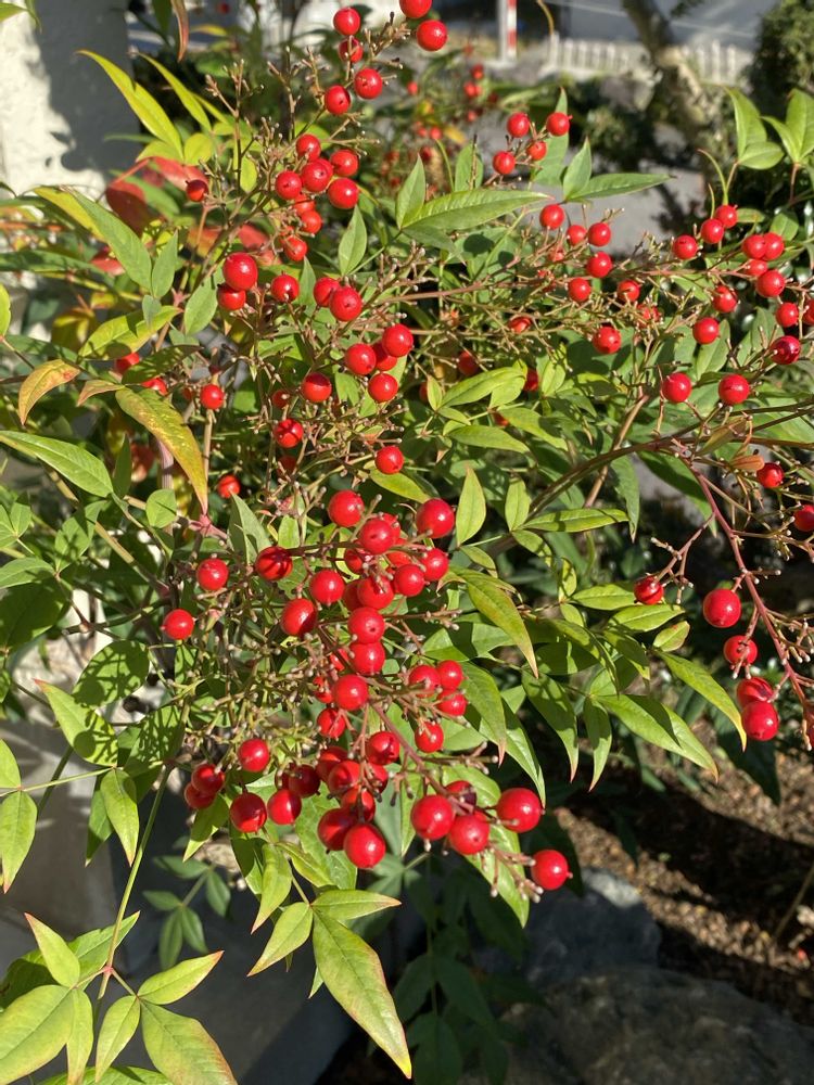 久々に青空が広がり、暖かな日差しが降り注いでいます。小春日和です。南天の実が真っ赤になってきました。