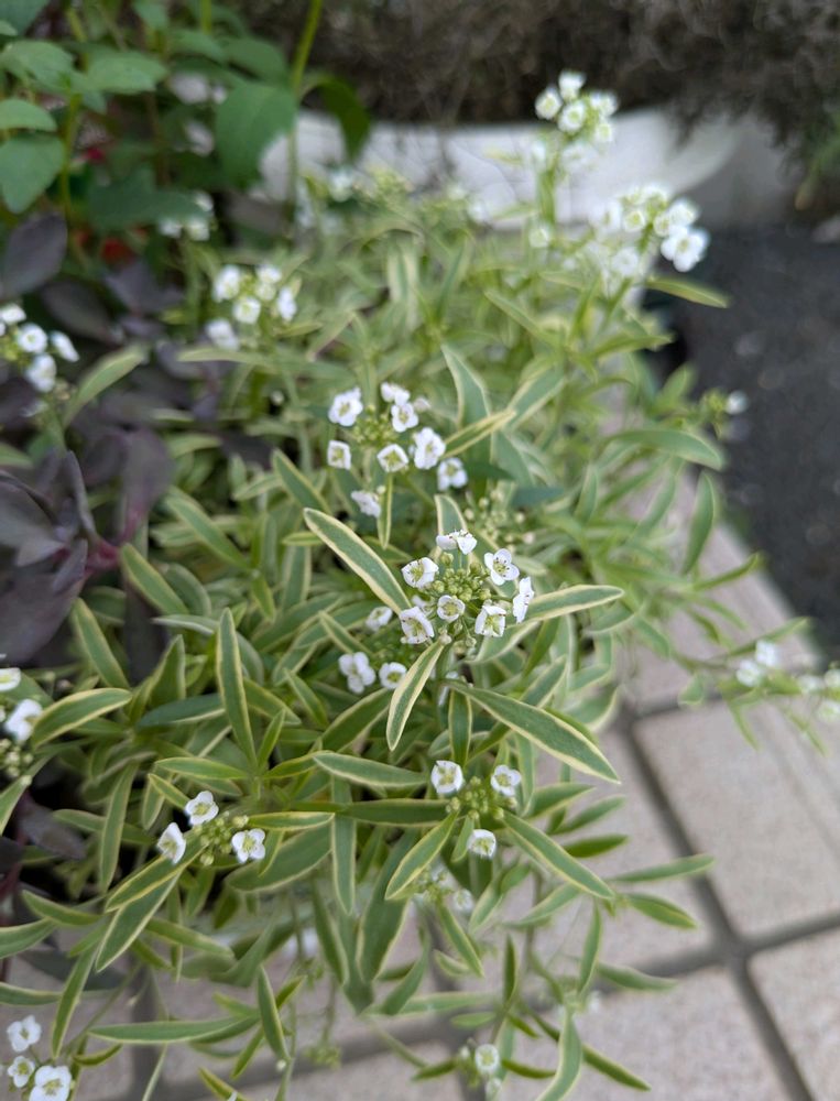 寄せ植えした鉢のスーパーアリッサムに白い小花🤍が咲いてきて可愛いです☺️💕