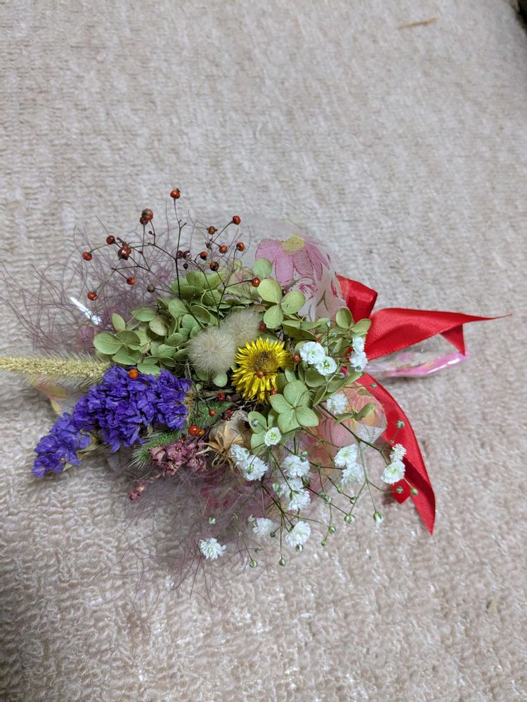 ②③出来たドライフラワーでミニブーケ作ってみました✨