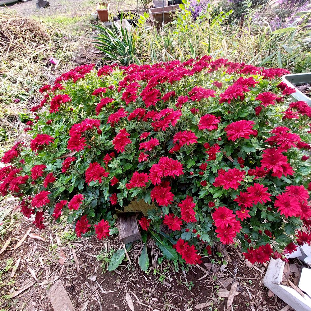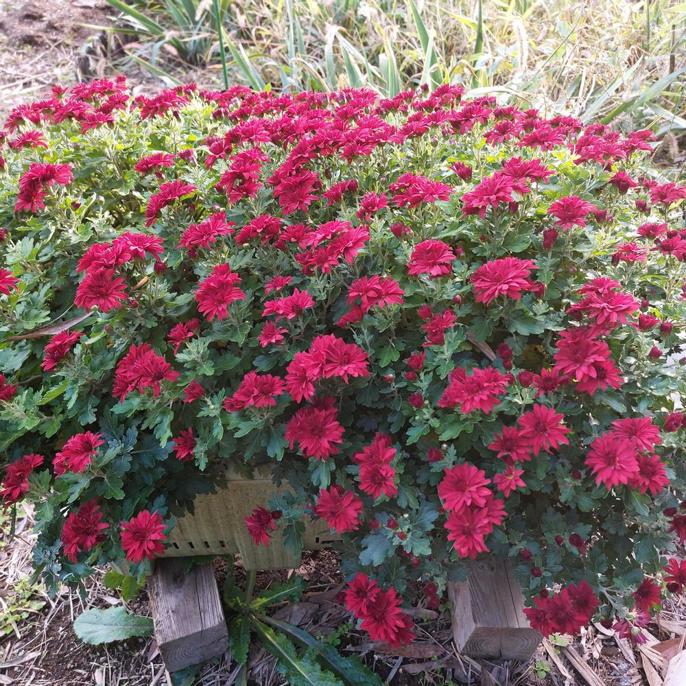 花友さんから、🌱苗を頂いて、植えておくだけで、丸く咲くと言われたのですが😅🔰🔰ざる菊、全くの初心者・・赤、二苗植えたのですが、こんな状態もう少し、離して植えるべきでした😂