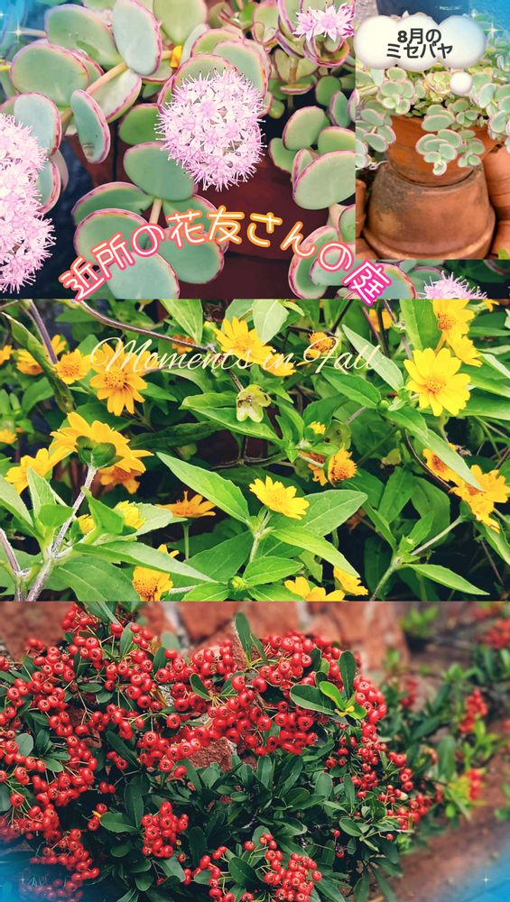 8月のミセバヤと比較してました〰🟡🌻メランポジウムに囲まれて 足元🔴ピラカンサ 🍁晩秋の彩り⭕️🎈✨