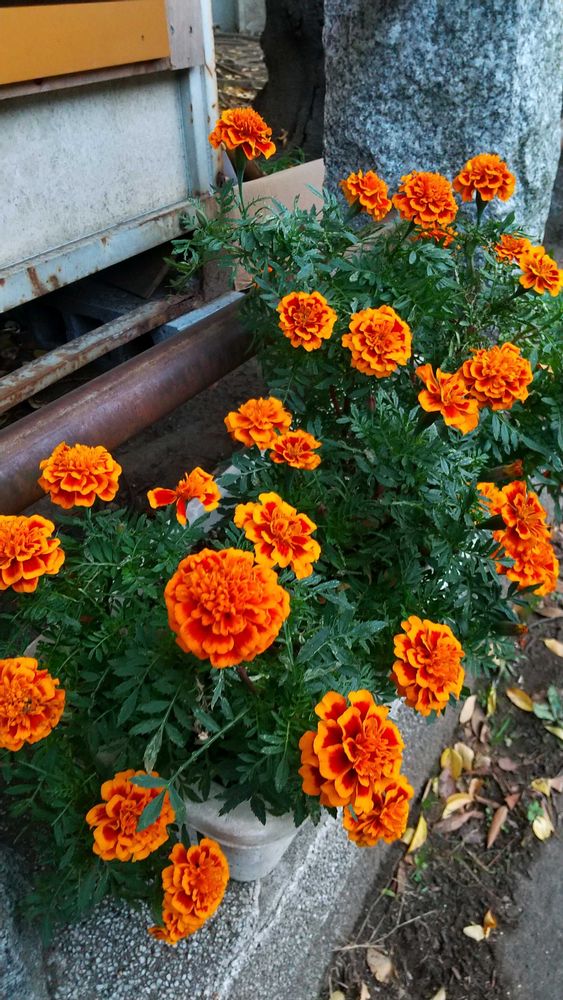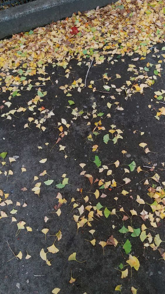 今年はまだイチョウの葉が黄色く色づくのが遅いのかまだ緑の葉が多く足元にはたくさんの落ち葉が広がっていました。銀杏もあまり落ちてはおらず気温が関係しているのかと感じました。今年は暑すぎたり雨が多かったり急に寒くなったり温暖差が激しかったですがそれでも負けずに咲き続けるマリーゴールドの儚い姿はなんとも言えない美しさがある。