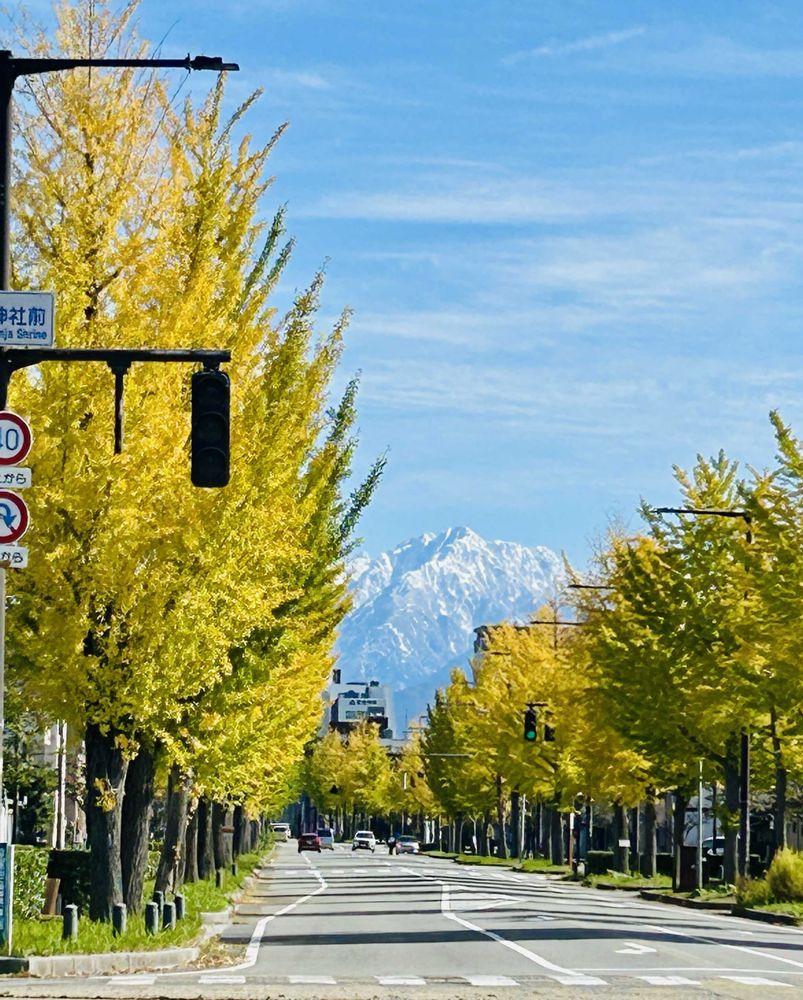 銀杏並木もう少ししたら黄色い絨毯に変わるねその頃には立山連山は真っ白くなるかな…