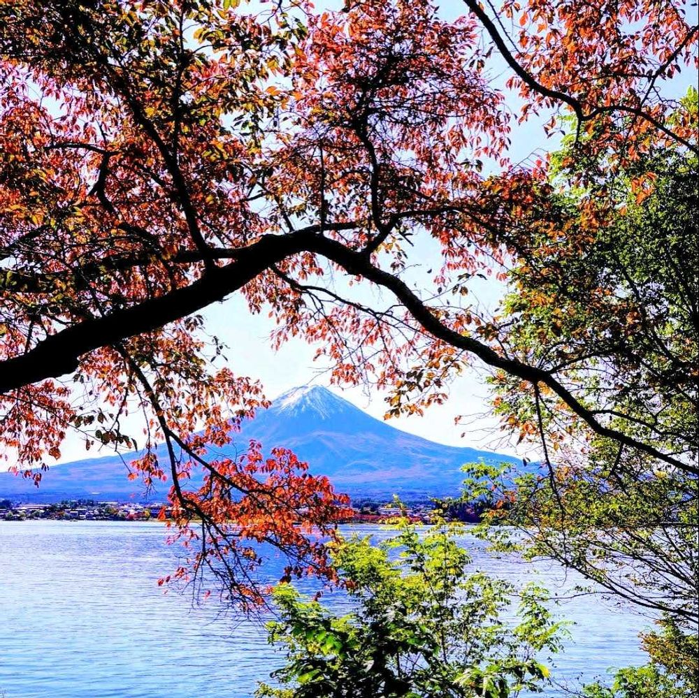 紅葉した富士山の様な枝の中に綺麗な富士山がスッポリ入ってとても素敵でした。