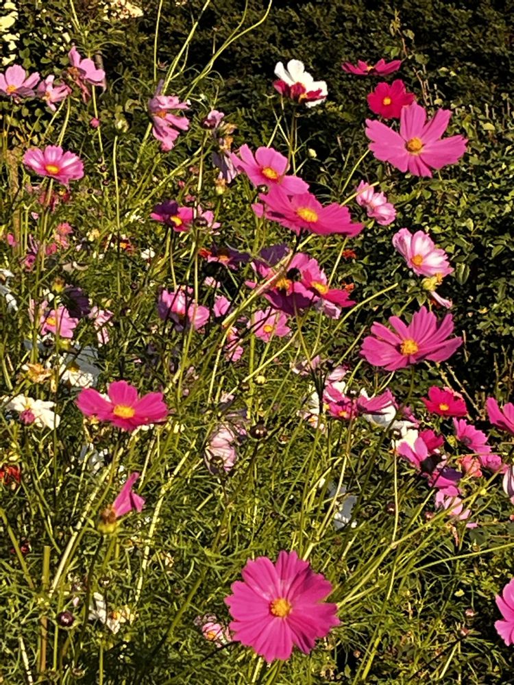 コスモスが浮かんでいるようでほっこりです😌 赤やピンクや白がのびのび咲いてるのを見ると和みますね〜
