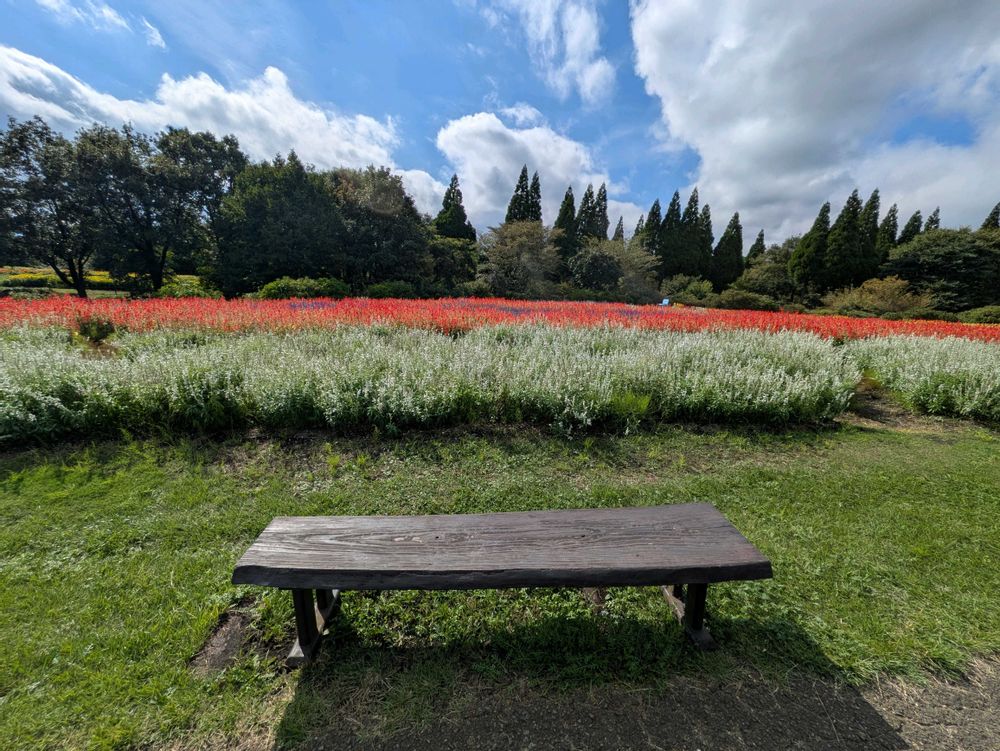 私は素朴なベンチでサンドイッチでも食べながら、サルビアを楽しみたい🥰