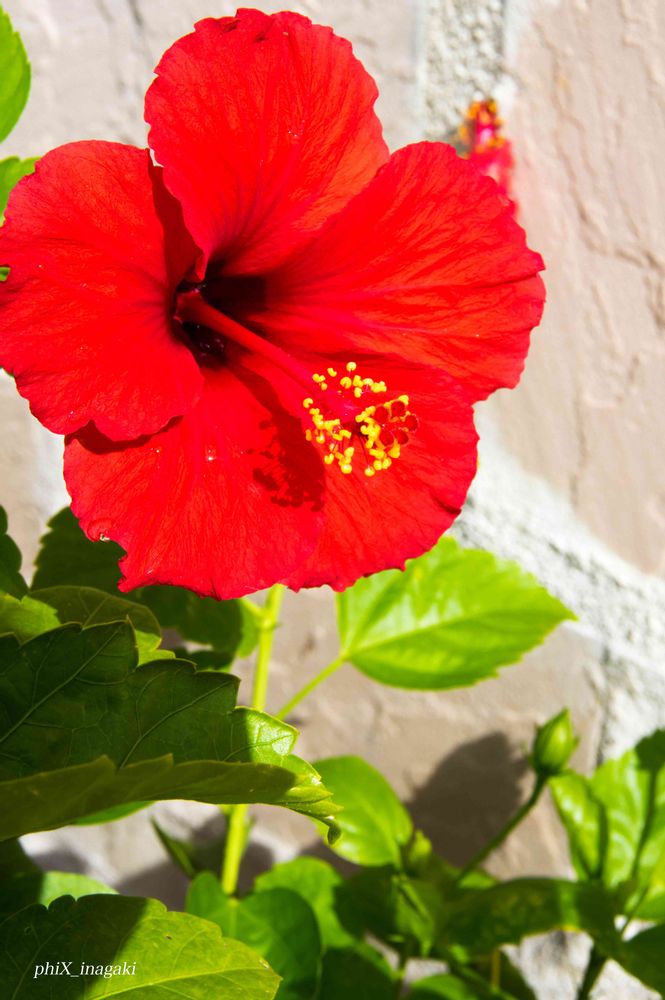やっと9:00の開園時間です。入り口を入ると,とっても大きな深紅のハイビスカスが出迎えてくれました。立派!直径20cmはあったと思います。