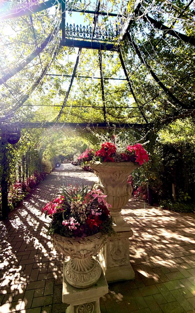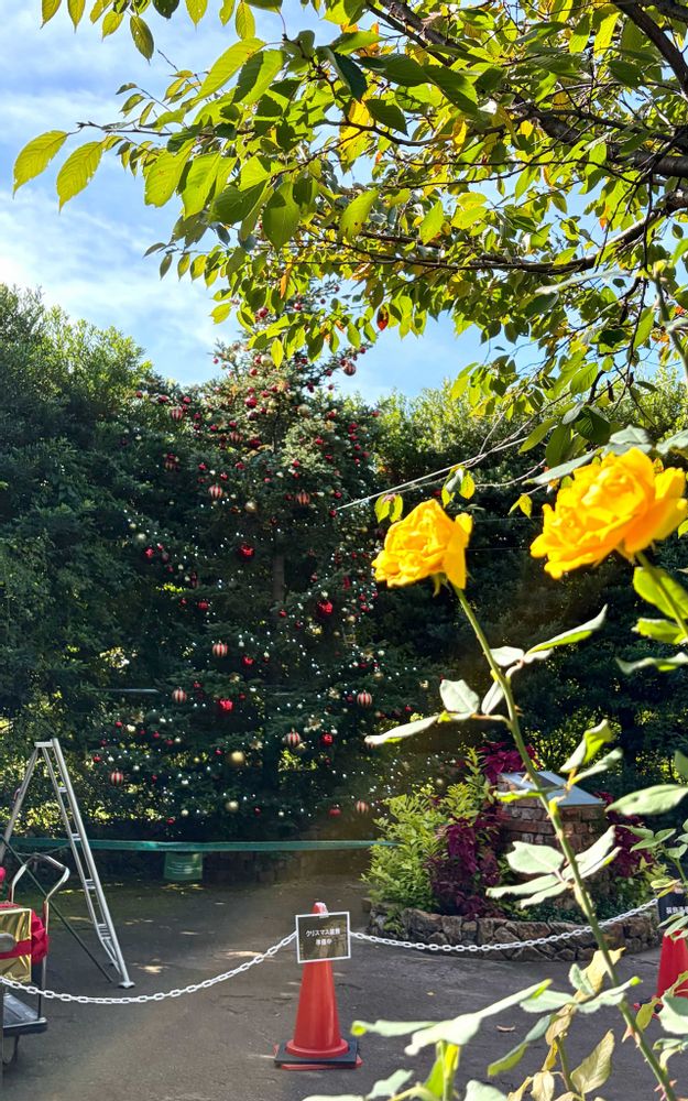 ローズトンネルの奥にクリスマスツリー準備中🎄