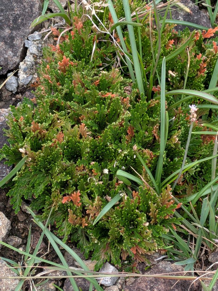 ツルボやヤマジソと同じ場所に小型のイワヒバも生えています。