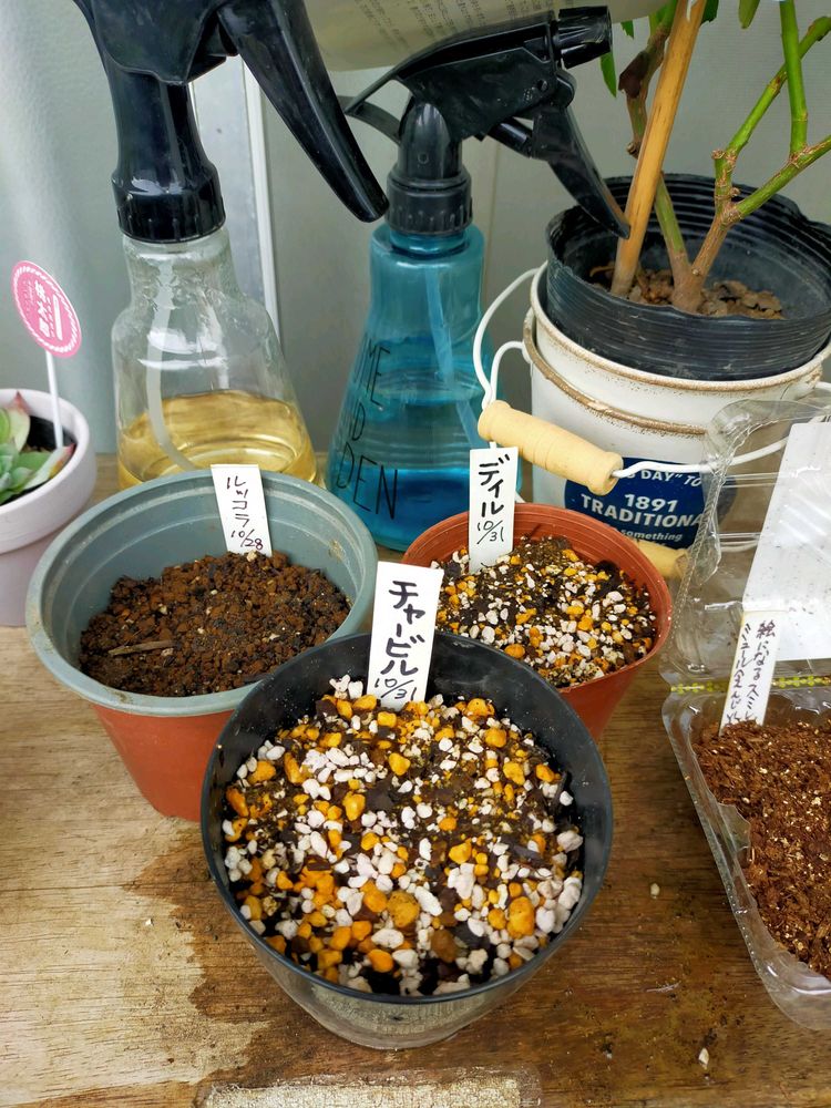 時期が遅すぎたのか、古い種も多いからか、芽🌱が出る気配がない。