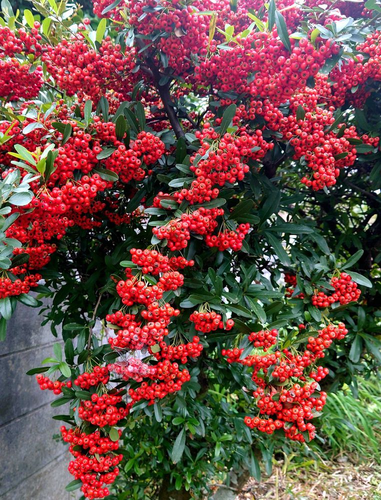 ご近所の「ピラカンサ」(トキワサンザシ)の真っ赤な実🌿❤️