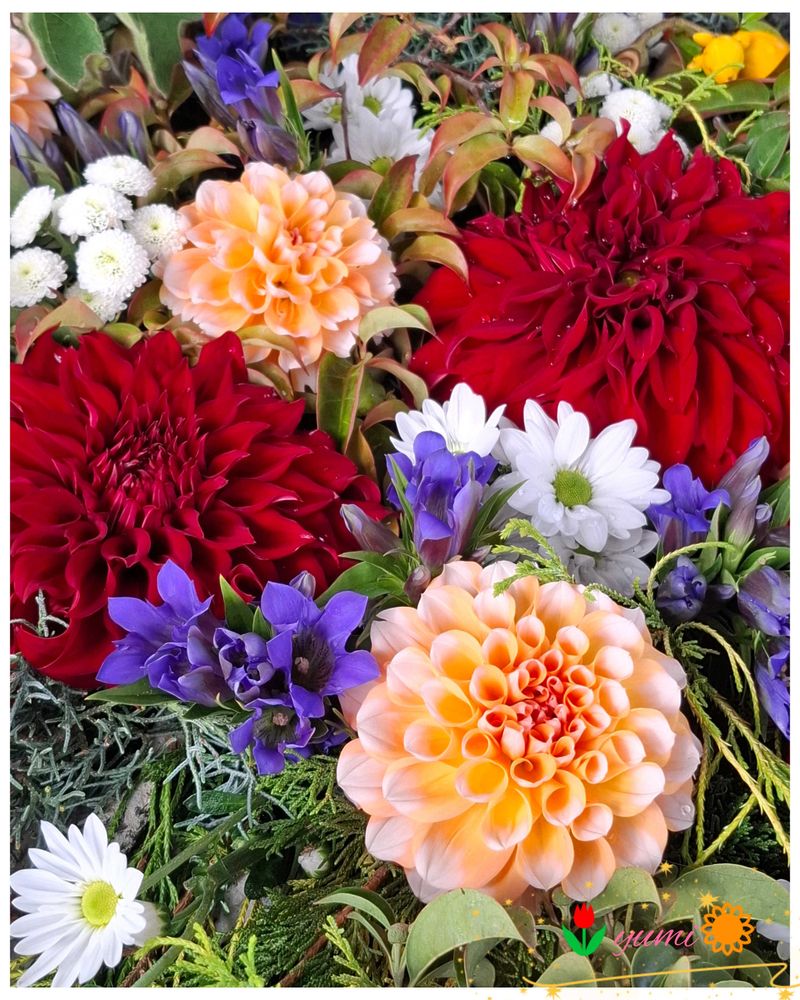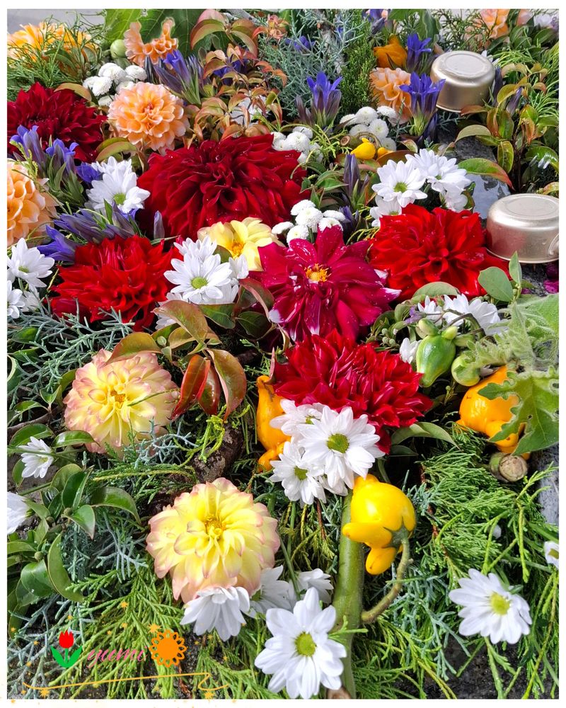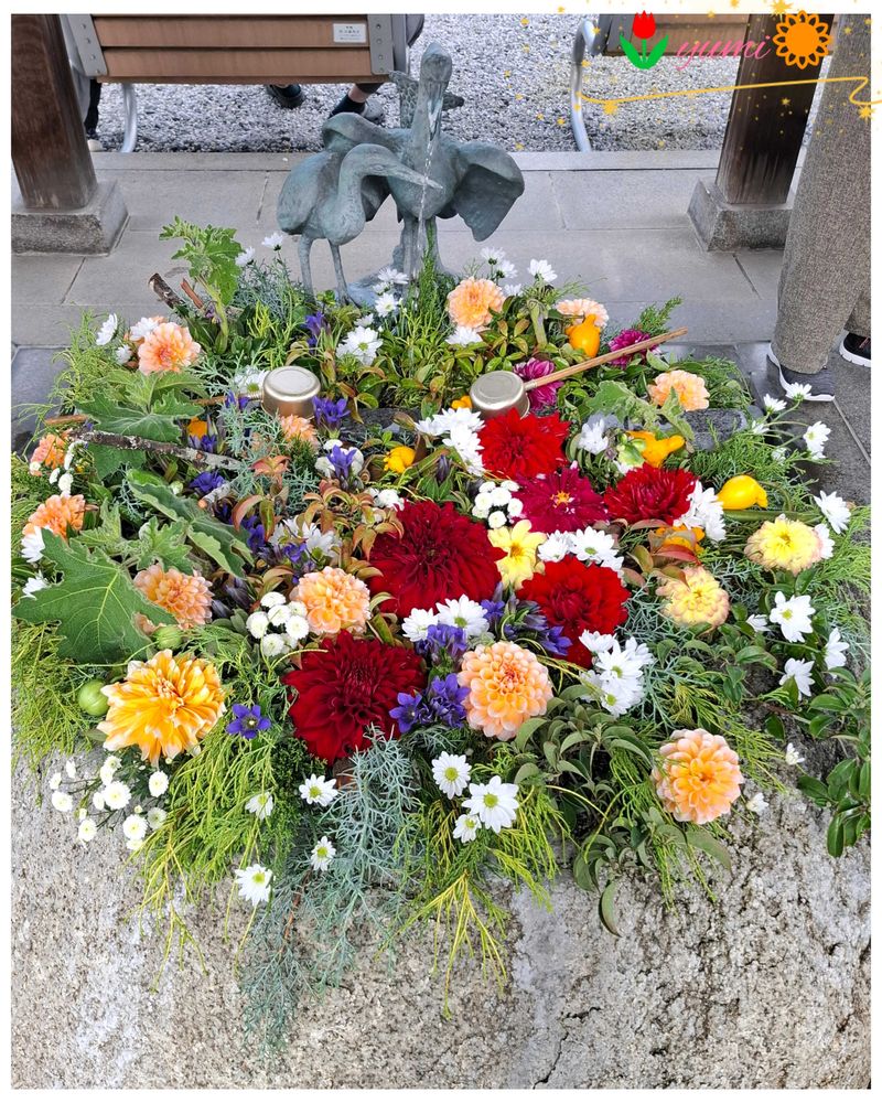 花だけでなく葉っぱもたくさん入っていて神社ならではですね😍