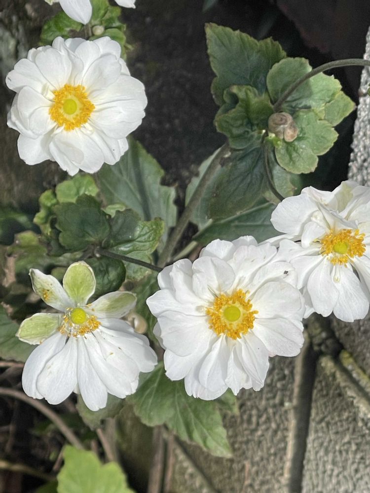 友人宅の庭で咲いている、八重咲の秋明菊が綺麗です。