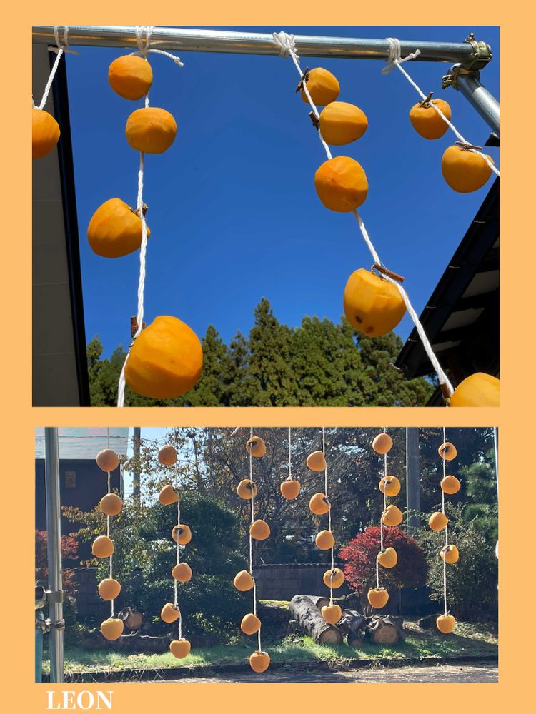 干し柿は吊るした初日なのでとっても綺麗なオレンジ色になりました🧡🧡