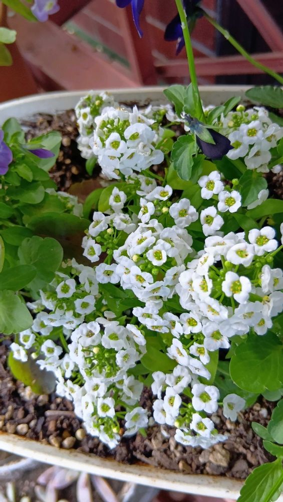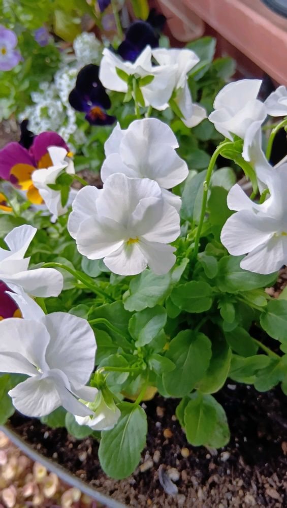 白いビオラさんw白いアリッサムさんwブロウメアナさん上品な色合いステキですネ🙋😃✌🩷❣️🤍