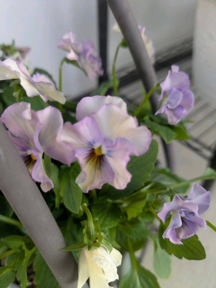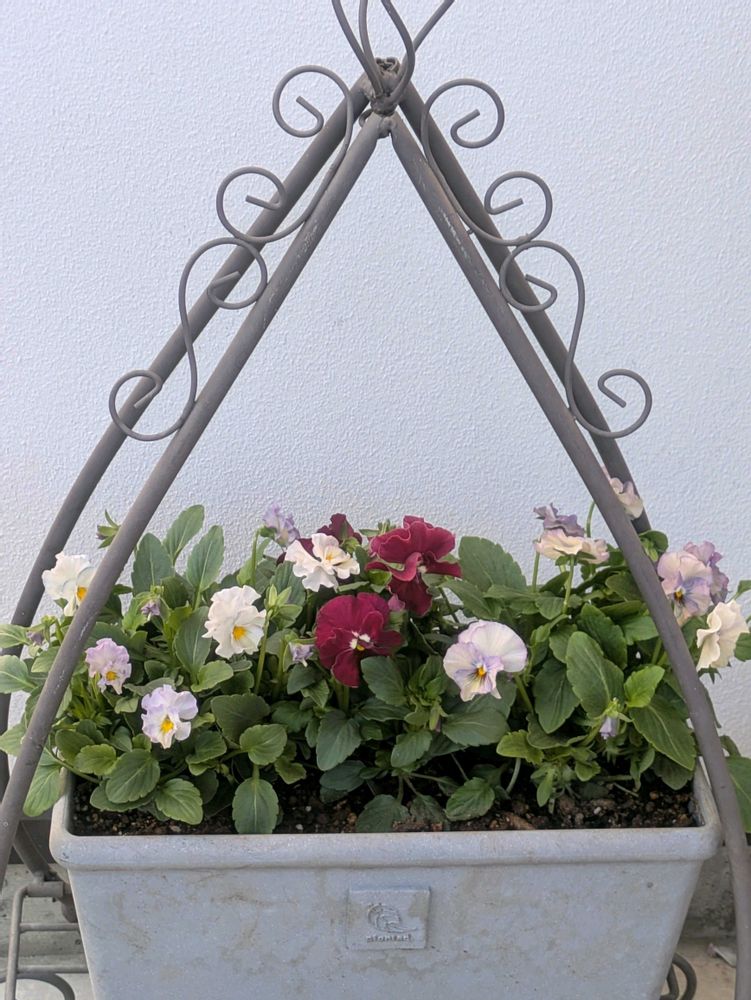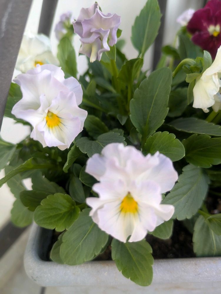 両端はビオラ華あられ真ん中はパンジーのアルバルーチェ🥰