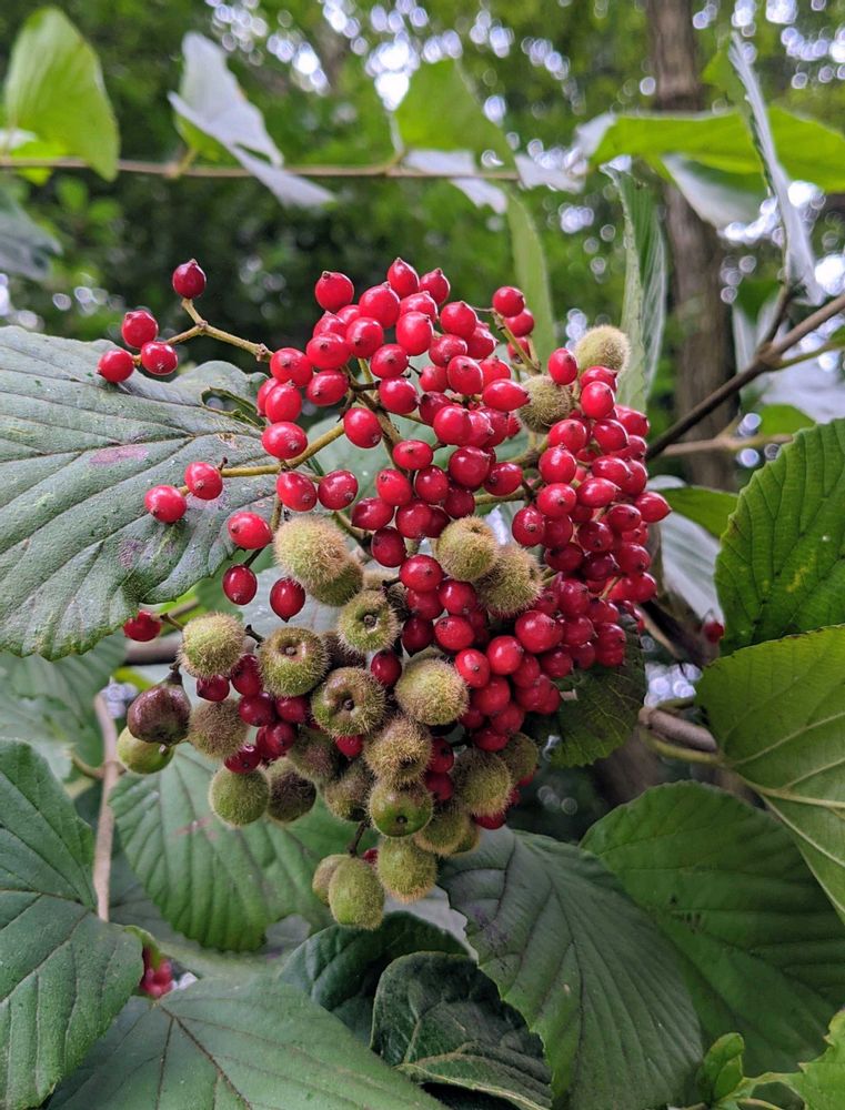 初めてガマズミ赤い実と一緒に生っている丸くてモフモフの果実な何??ってなりました😂