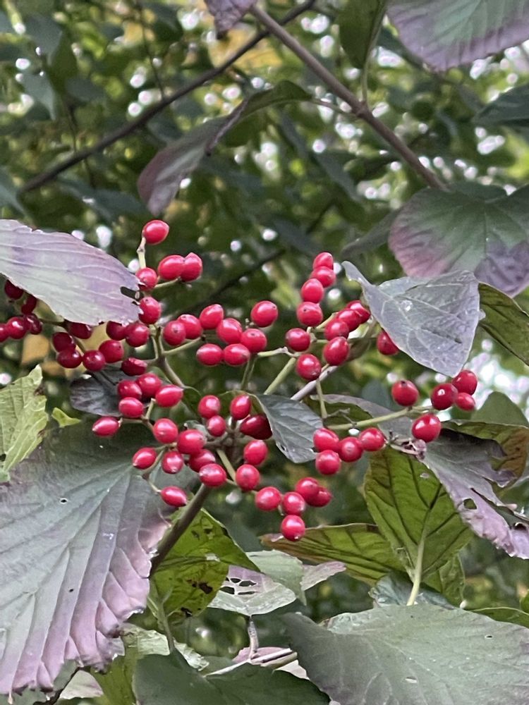 秋になってガマズミの実も一段と熟しているようで、葉っぱも少し紅葉していました。