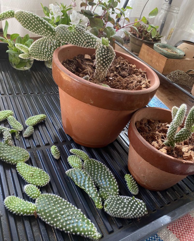 サボテンはよく分からなくて耳?の部分をポキって折って土にブスッと😅