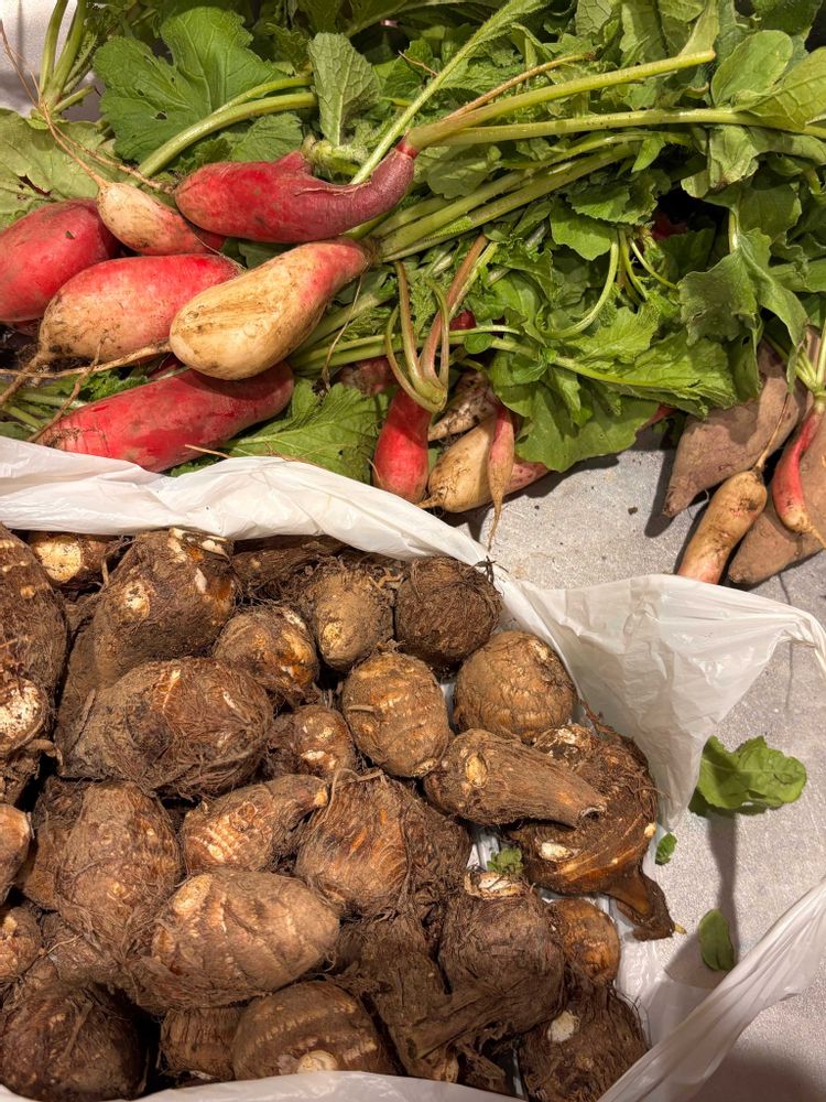 ⑤私が一日中 ベランダで植え込み中に畑に行ってた相方の収穫