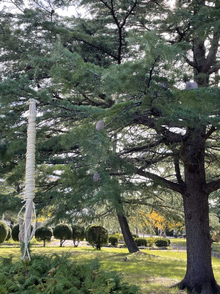 シルバー人材センターの方の講習を兼ねて 公園から 雪吊りがはじまります(木が雪で折れない様に)