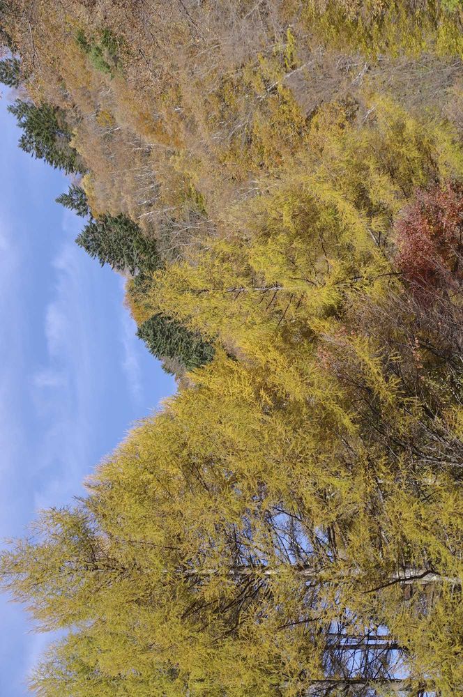 この場所は落葉松が多く、この時期には陽に照らされた紅葉がとても綺麗です✌️