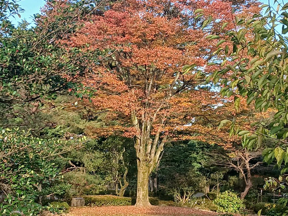 時雨亭そばの欅が綺麗に色付いてきました。