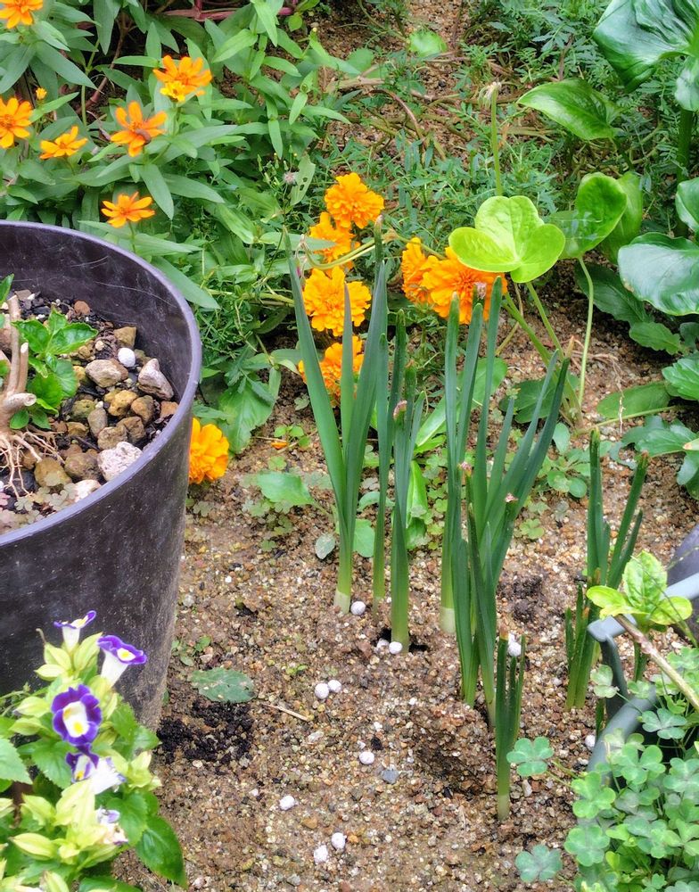 ①小庭のリフォームで土に埋もれてしまった水仙が見事復活🙌。