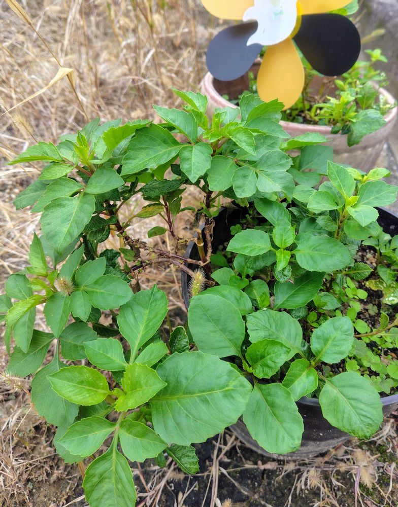 夏の名残の花たちの間からグイグイ伸びてきました。ド根性✊️!