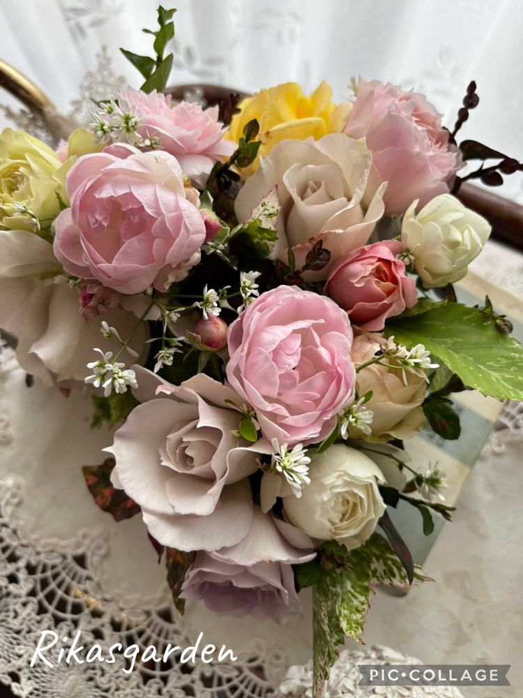 ①今日の午後はお友達のお茶会に招いて頂いたので、庭の花を手土産にしました。