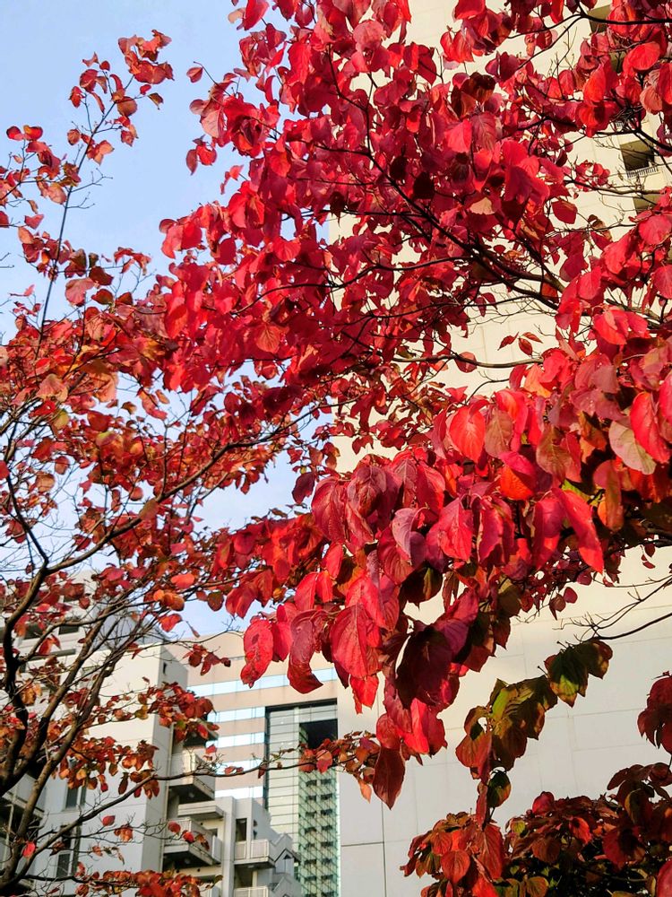 今朝、通勤途中に見かけた桜の紅葉をもう一枚。