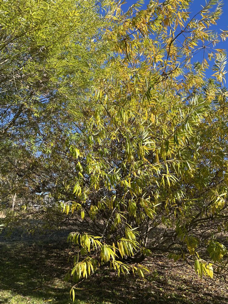3、先日石化柳の生えている姿を見たいという花友さんがいましたので、高さ3メートル弱、横幅は4メートルほどあります。中央の長い細い葉がついているのが石化柳です