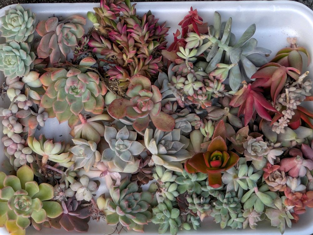 まだまだカットの残りはあるのですが 他の作業も山積みで 植え替えは諦めました チビ苗も抜いたままのが多くダメになりそう 葉挿しの植え替えしないと徒長してしまうものとか😰